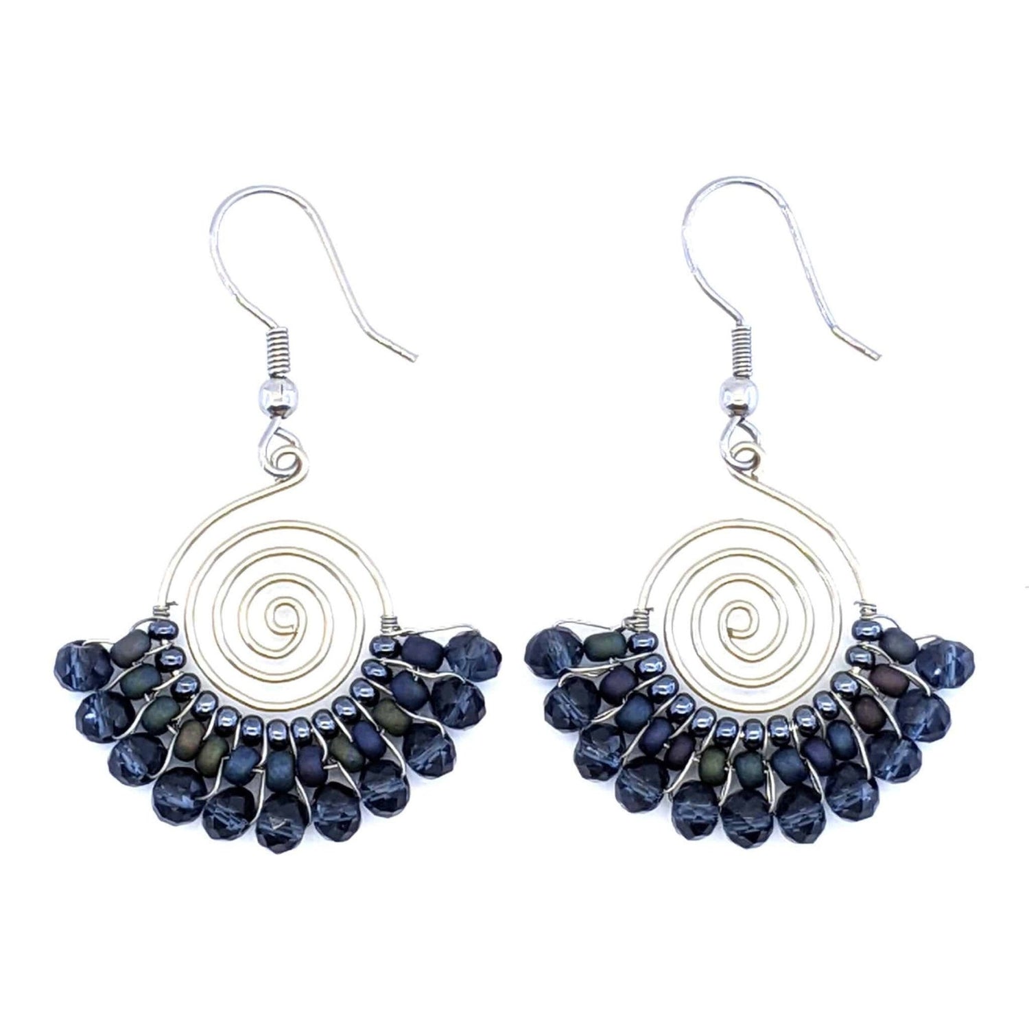 Our beaded earrings are super-popular! They are handmade by Maya women artisans using the highest quality Czech glass beads and crystals, durable professional beading thread, and stainless steel earring wires. Czech glass beads, when viewed under a microscope, refract light in complicated ways, leading them to be quite vibrant. They are durable, colorfast, and smooth.