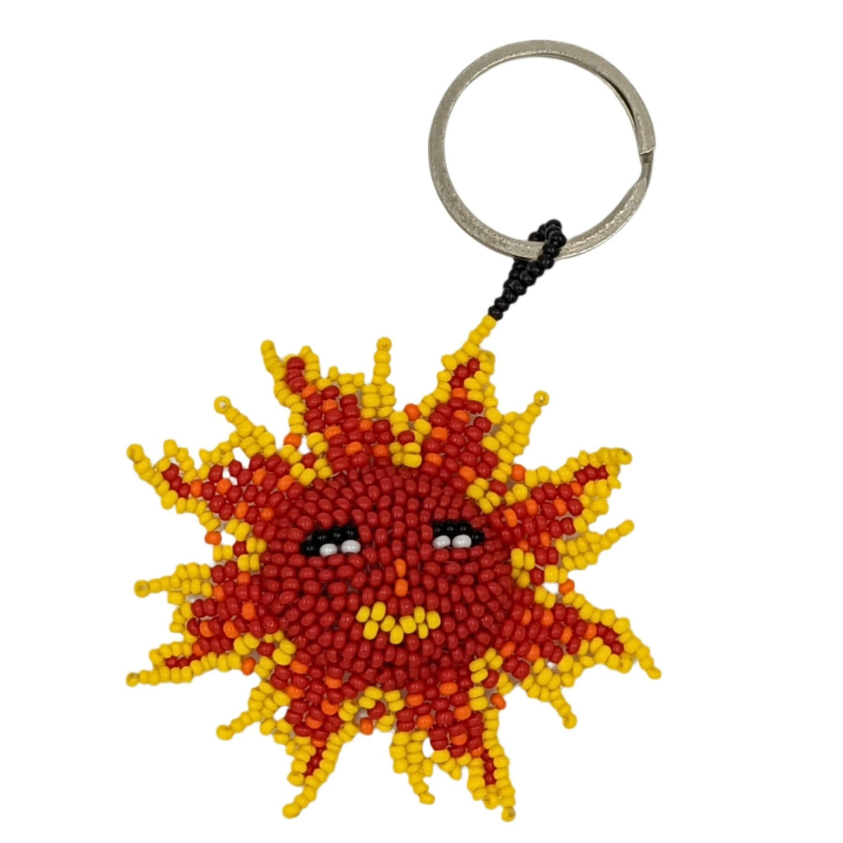 Precio unitario porOur sun beaded ornament / key ring / backpack charm is handmade by Maya women artisans using high quality Czech glass beads and professional beading thread. Czech glass beads, when viewed under a microscope, refract light in complicated ways, leading them to be quite vibrant. They are durable, colorfast, and smooth.