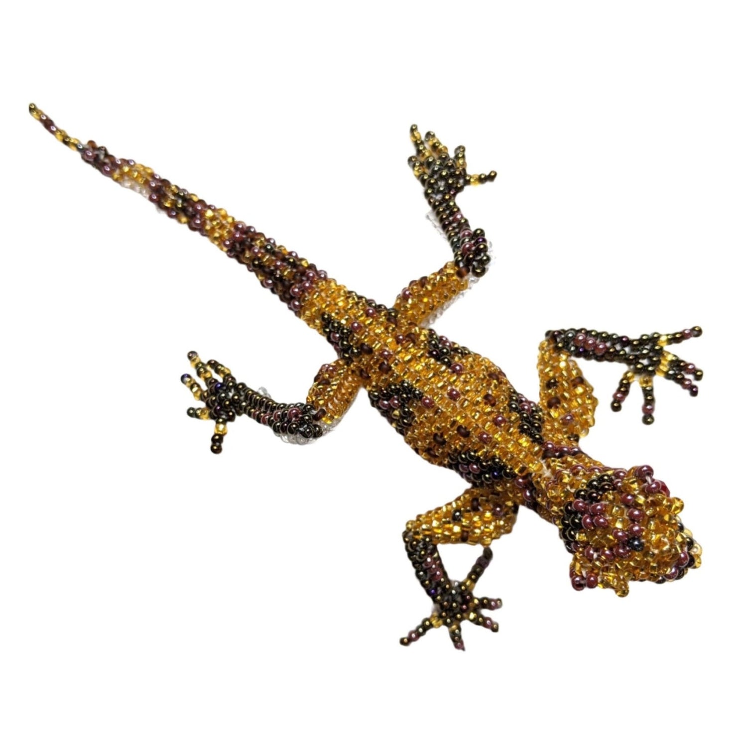 Large Lizard Beaded Table Ornament - Golds, Turquoise, Iridescent Brown