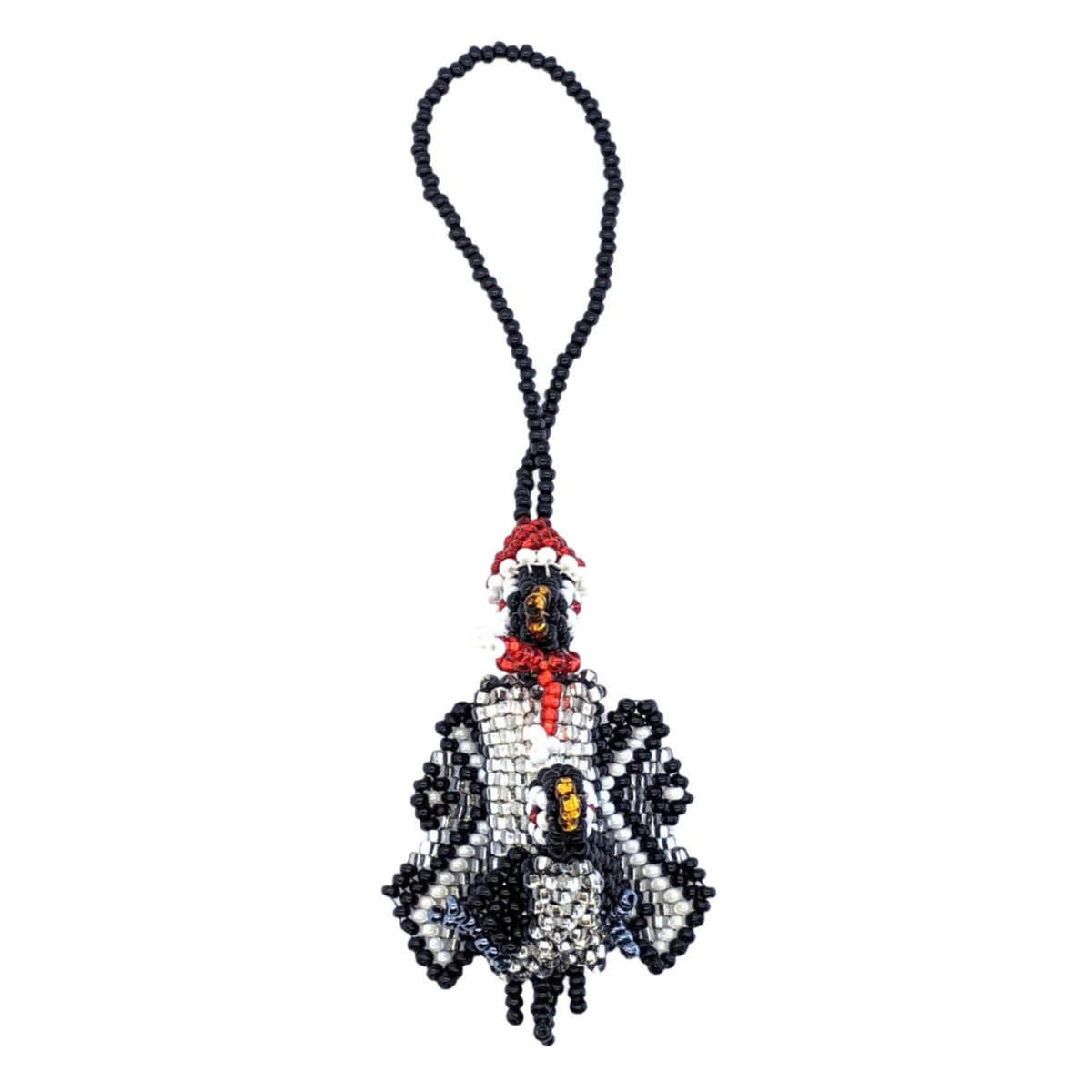 Precio unitario porNuestro pingüino rey con colgante de anillo/mochila con adorno navideño con cuentas de pingüino bebé está hecho a mano por Mujeres de Panabaj. un grupo de artesanas mayas, que utilizan cuentas de vidrio checo de alta calidad e hilo de abalorios profesional. Las cuentas de vidrio checo, cuando se ven bajo un microscopio, refractan la luz de maneras complicadas, lo que las hace bastante vibrantes. Son duraderos, no destiñen y suaves.