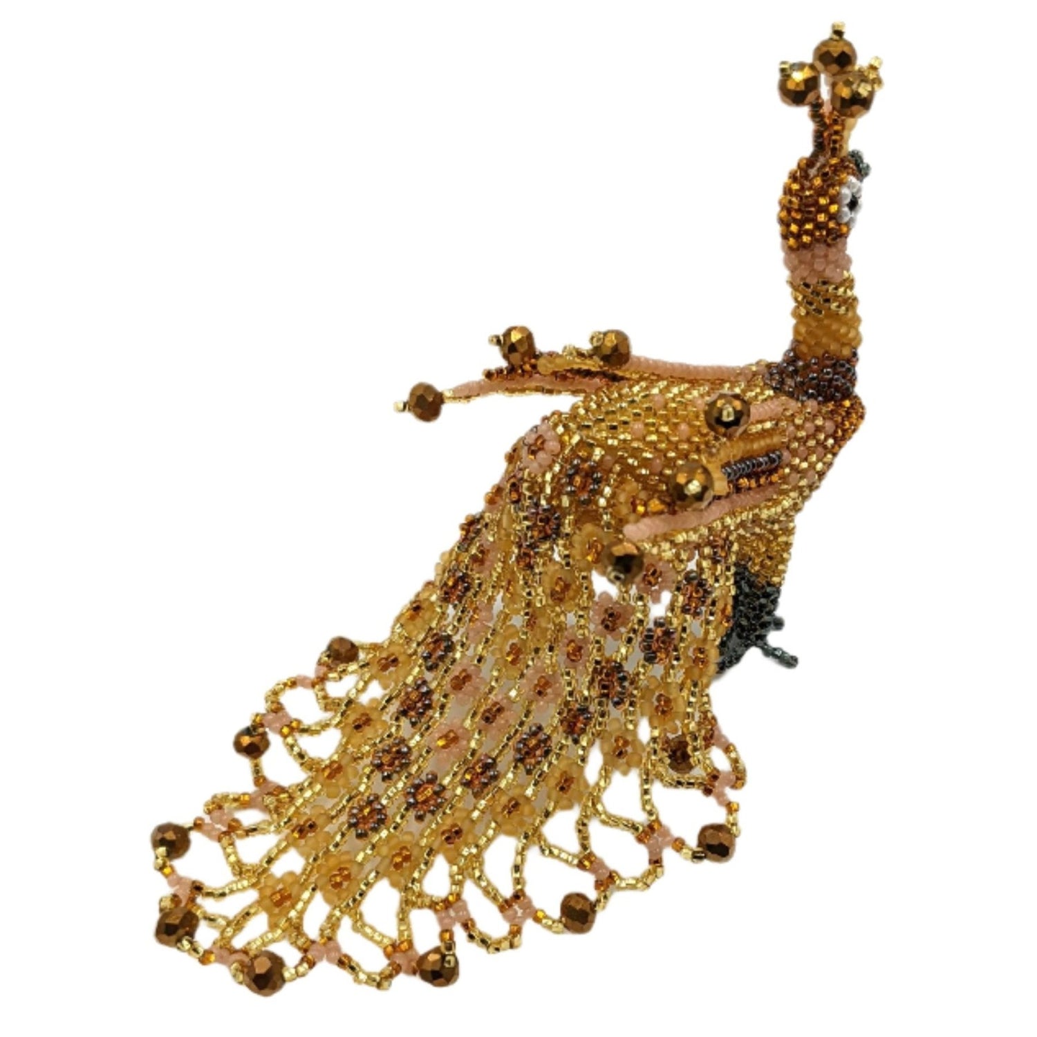 Precio unitario porPeacock Beaded Ornament - Medium - Dark Golds and Iridescent Brown