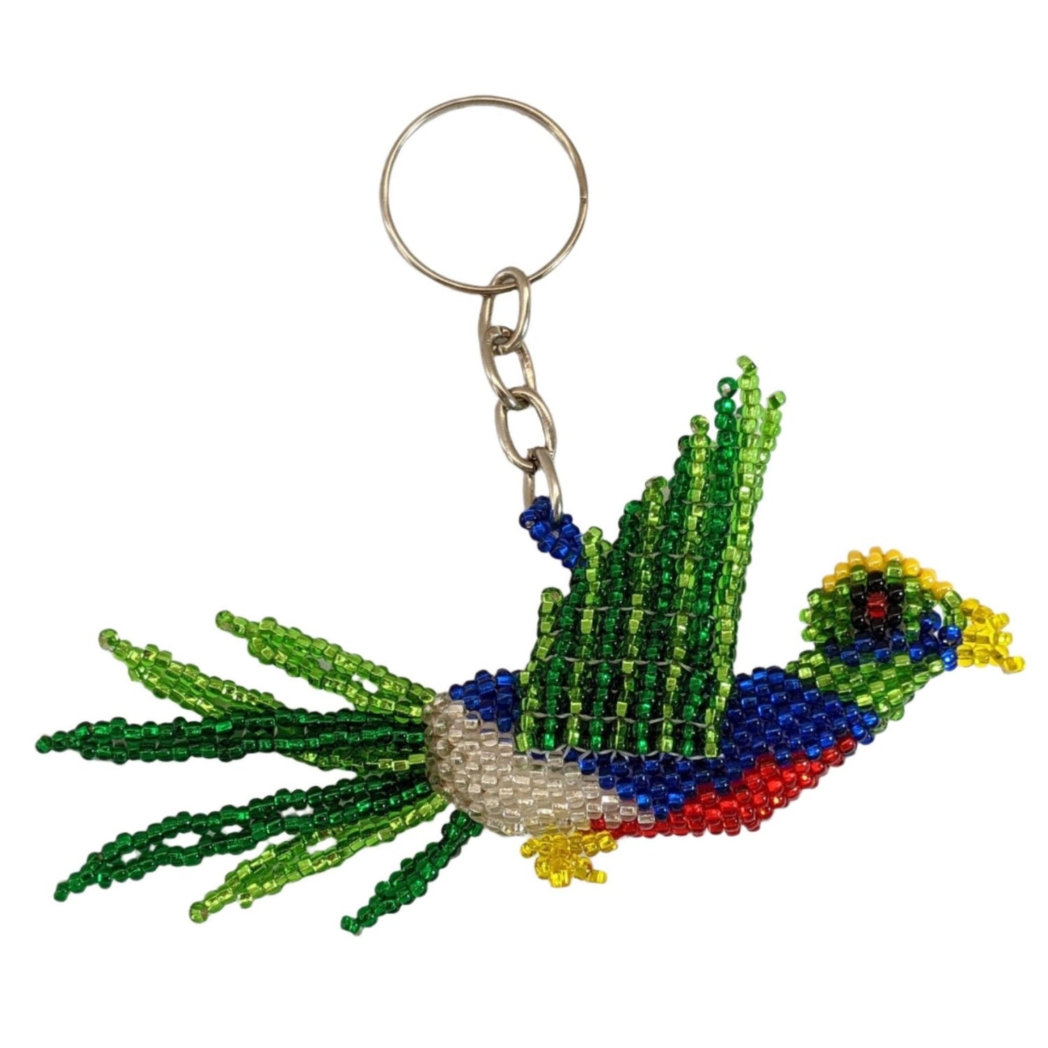 Precio unitario porOur beaded peacock ornament/key ring/backpack charm is handmade by Maya women artisans using high quality Czech glass beads and professional beading thread. Czech glass beads, when viewed under a microscope, refract light in complicated ways, leading them to be quite vibrant. They are durable, colorfast, and smooth.
