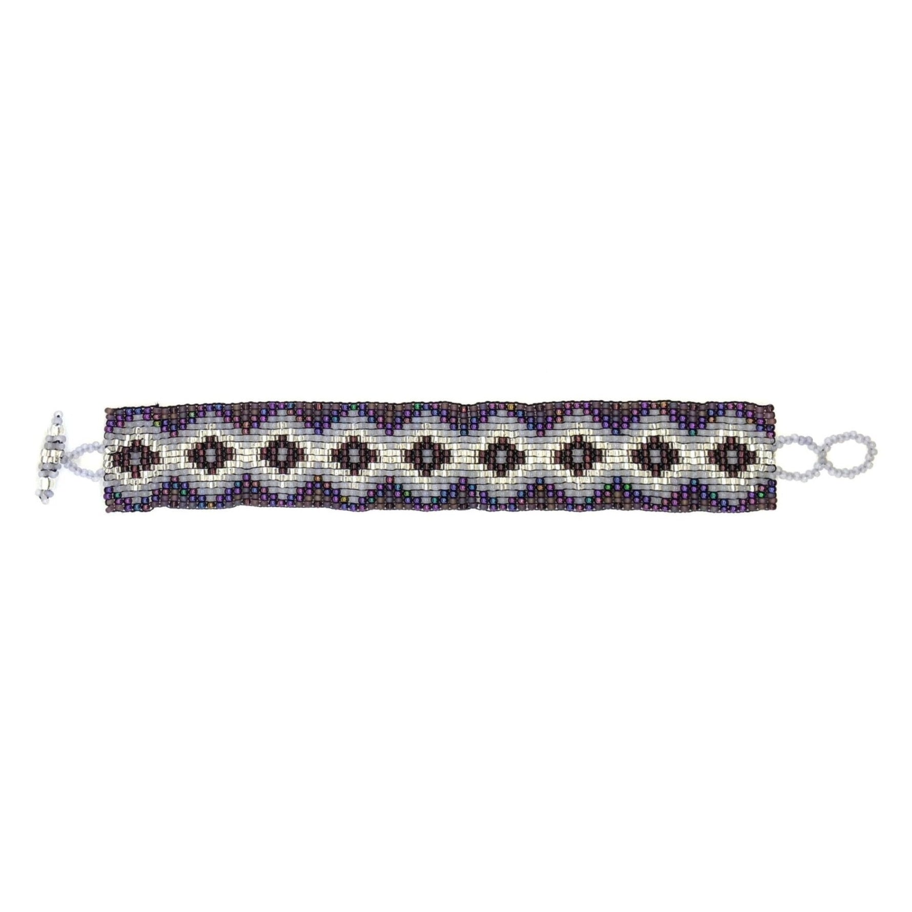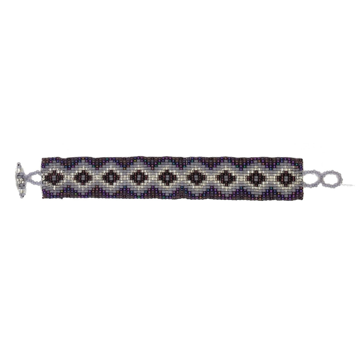 Nuestras pulseras se cierran fácilmente con un cierre de palanca: un extremo tiene presillas con cuentas y el otro una pieza en forma de T que se desliza en una de las presillas, dependiendo de qué tan apretada o suelta quieras que quede la pulsera. ¡Todo muy resistente!