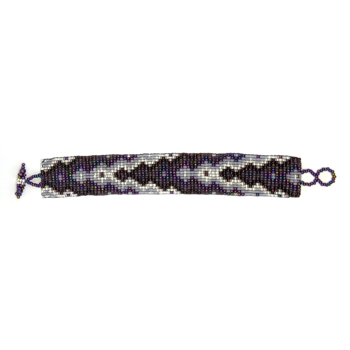 Nuestras pulseras se cierran fácilmente con un cierre de palanca: un extremo tiene presillas con cuentas y el otro una pieza en forma de T que se desliza en una de las presillas, dependiendo de qué tan apretada o suelta quieras que quede la pulsera. ¡Todo muy resistente!