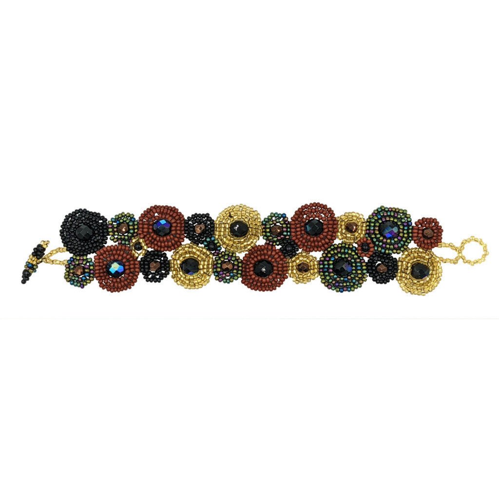 Nuestras pulseras se cierran fácilmente con un cierre de palanca: un extremo tiene presillas con cuentas y el otro una pieza en forma de T que se desliza en una de las presillas, dependiendo de qué tan apretada o suelta quieras que quede la pulsera. ¡Todo muy resistente!