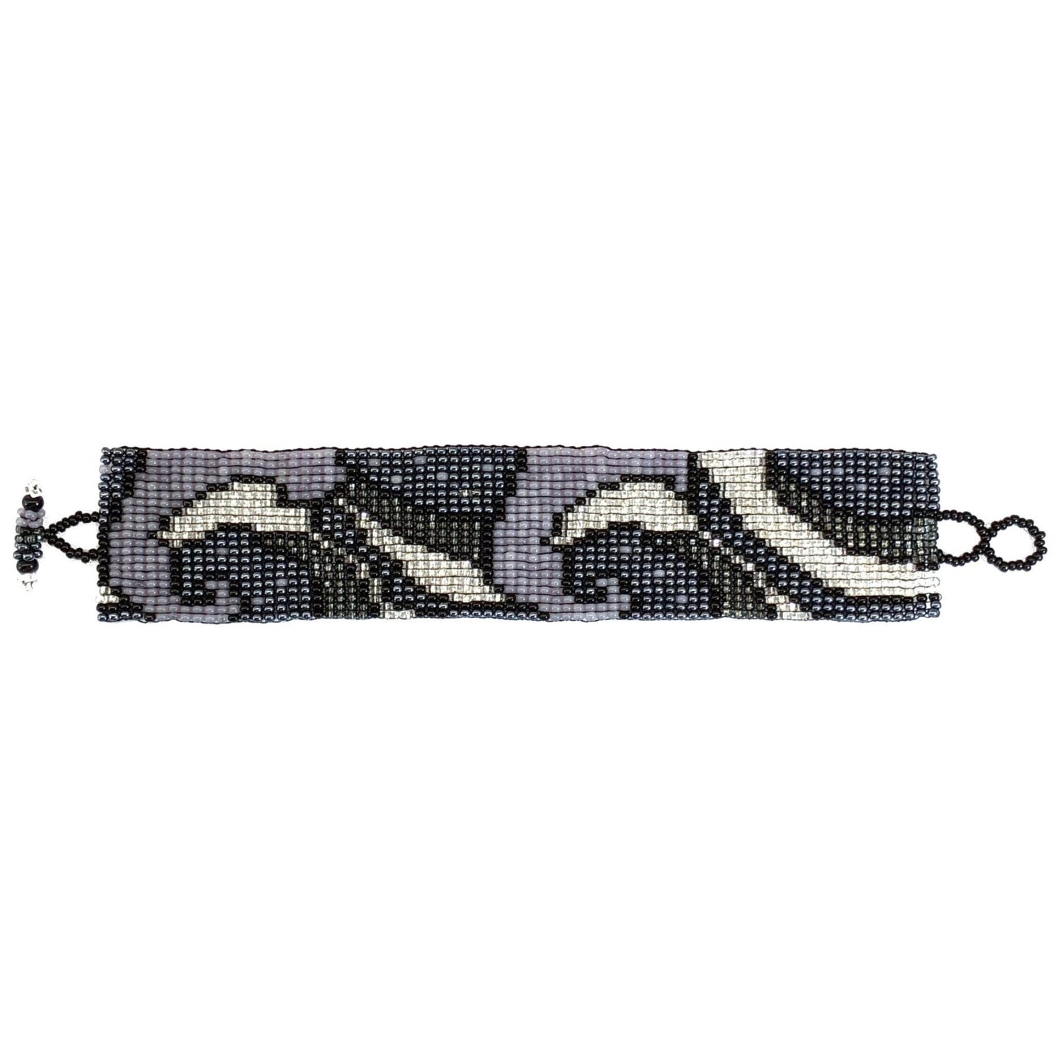 Pulsera de cuentas de rayas tejidas en gris, blanco y negro