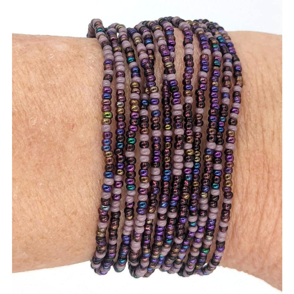 Precio unitario porPulsera con cuentas de rayas anchas tejidas en morado