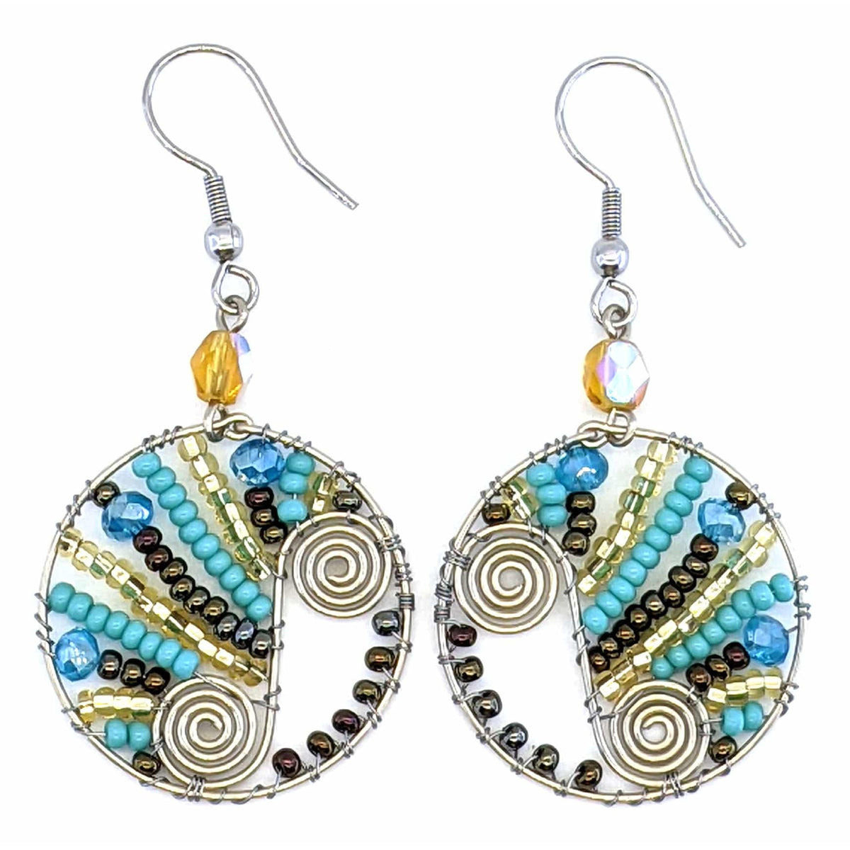 Pendientes con cuentas Aurora de color turquesa, bronce y oro