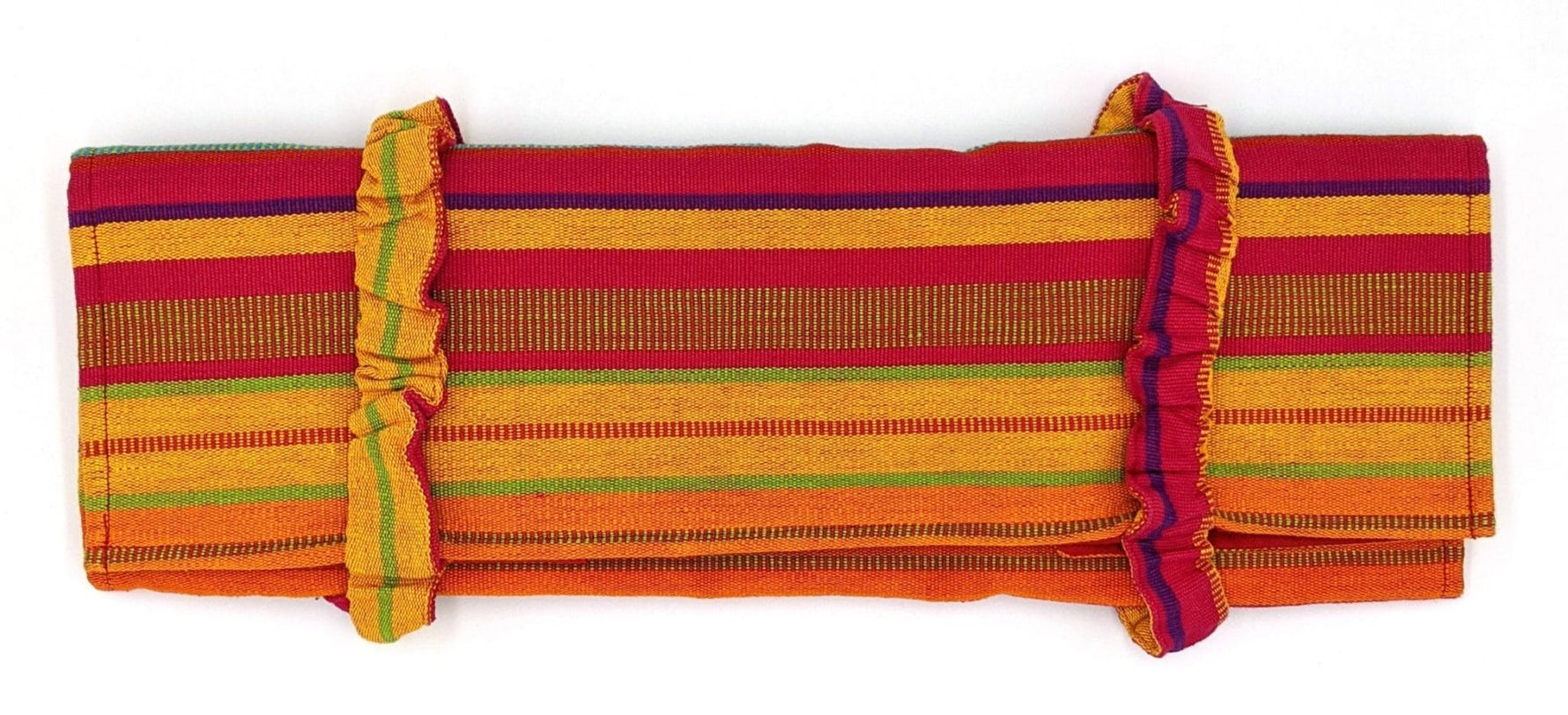 Este maravilloso organizador de agujas de tejer está hecho de tela de algodón tejida a mano por la cooperativa de tejedores de San Antonio Palapó. Los sastres de la Asociación Maya los cortaron y cosieron con destreza, ¡y aquí están!