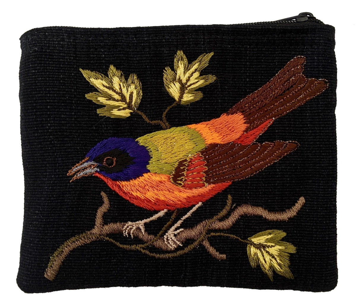 Andrés primero aprendió a bordar a mano y luego aprendió por sí mismo a pintar hilos en una máquina de coser. Utiliza fotografías de pájaros y mariposas que hemos elegido de libros o online como modelos para sus bordados. La tela se teje a mano en telares de cintura y luego se coloca en un bastidor de bordado para estirarla durante el proceso de bordado. Luego “pinta con hilo” el diseño usando su máquina de coser, moviendo la tela de varias maneras para obtener la textura y el efecto deseados. “Pinta” rápidamente, luego cambia el color del hilo y “pinta” nuevamente, es sorprendente la habilidad con la que produce el bordado. Luego confecciona el monedero, añadiendo cremalleras y forros. Hemos visto cómo su trabajo mejoró a lo largo de los años, ¡y hoy en día ha alcanzado la cima!