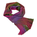 Bufanda tejida a mano de bambú ligero fucsia, oliva y morado 8 x 68