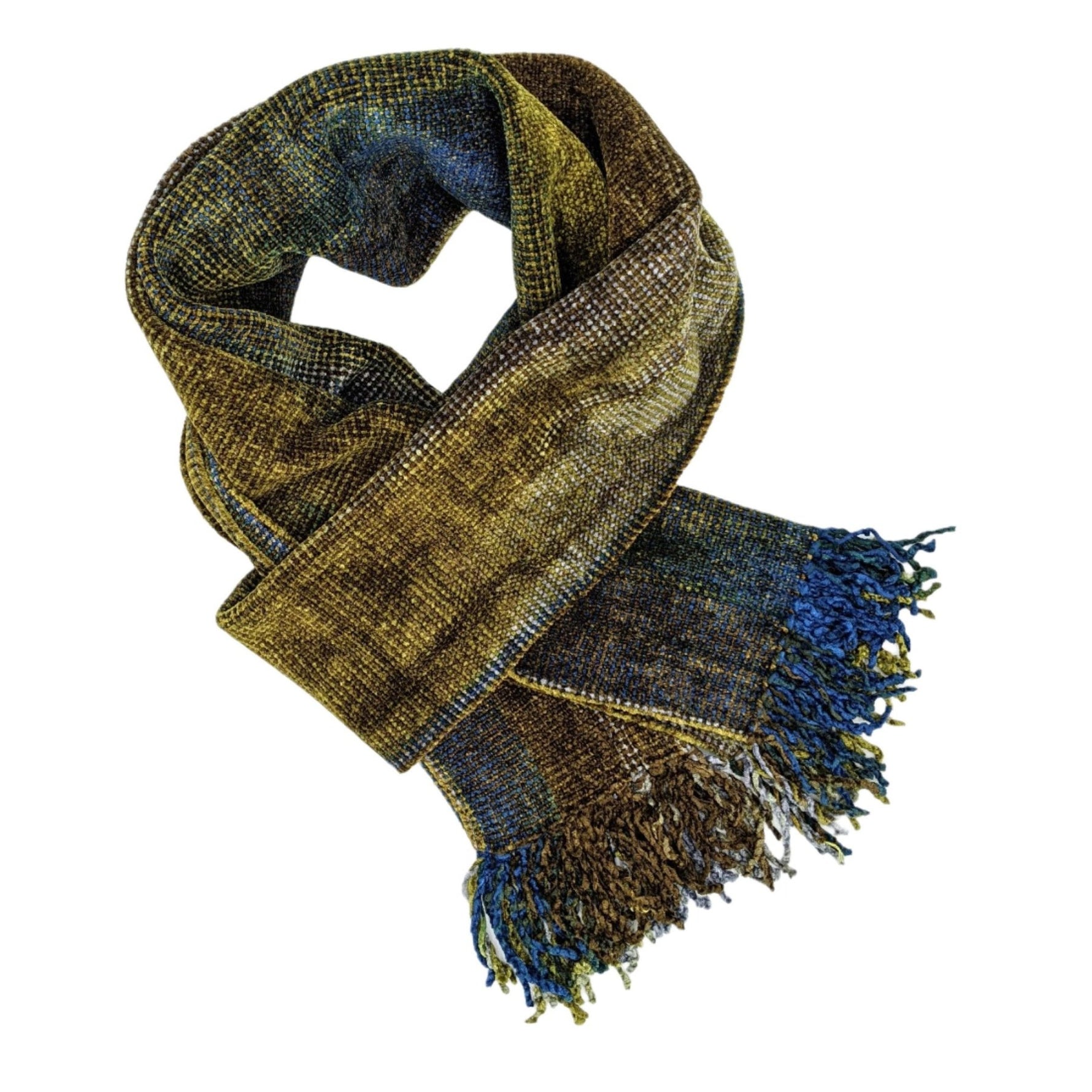 Estas bufandas están hechas a mano por una cooperativa de 180 tejedoras en Guatemala que han trabajado juntas durante más de 30 años. El proceso de confección de una bufanda requiere mucha mano de obra. La chenilla 100 % de bambú se enrolla en ovillos en una máquina manual y luego se tiñe a mano con tintes importados de EE. UU. Luego, el hilo se urde sobre una tabla de urdir. Luego, la bufanda se teje a mano en un telar tradicional de cintura, un proceso que a menudo requiere un día completo de trabajo. La chenilla está hecha de hilo de bambú orgánico cultivado de forma sostenible en China.