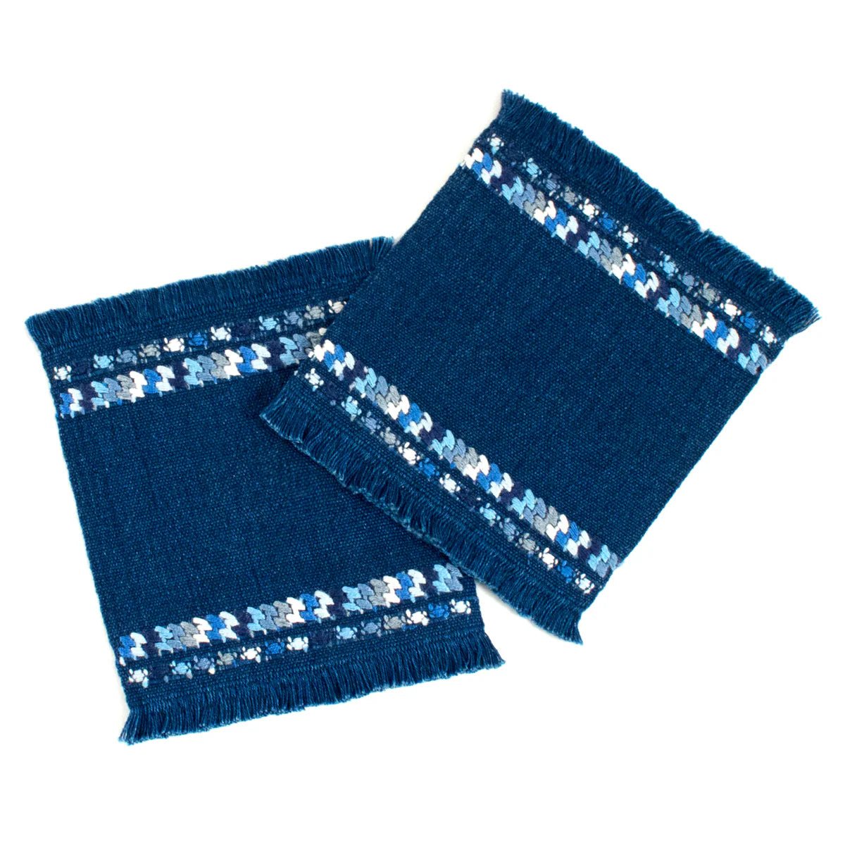Precio unitario porPar de posavasos tejidos a mano para aportar textura y atractivo a tu mesa. Con un borde de brocado tradicional delicadamente tejido en ambos extremos y presentado en tonos clásicos de azul. Elija índigo con detalles en mezclilla o mezclilla reciclada con detalles en índigo. Tejido a mano en telar de cintura.