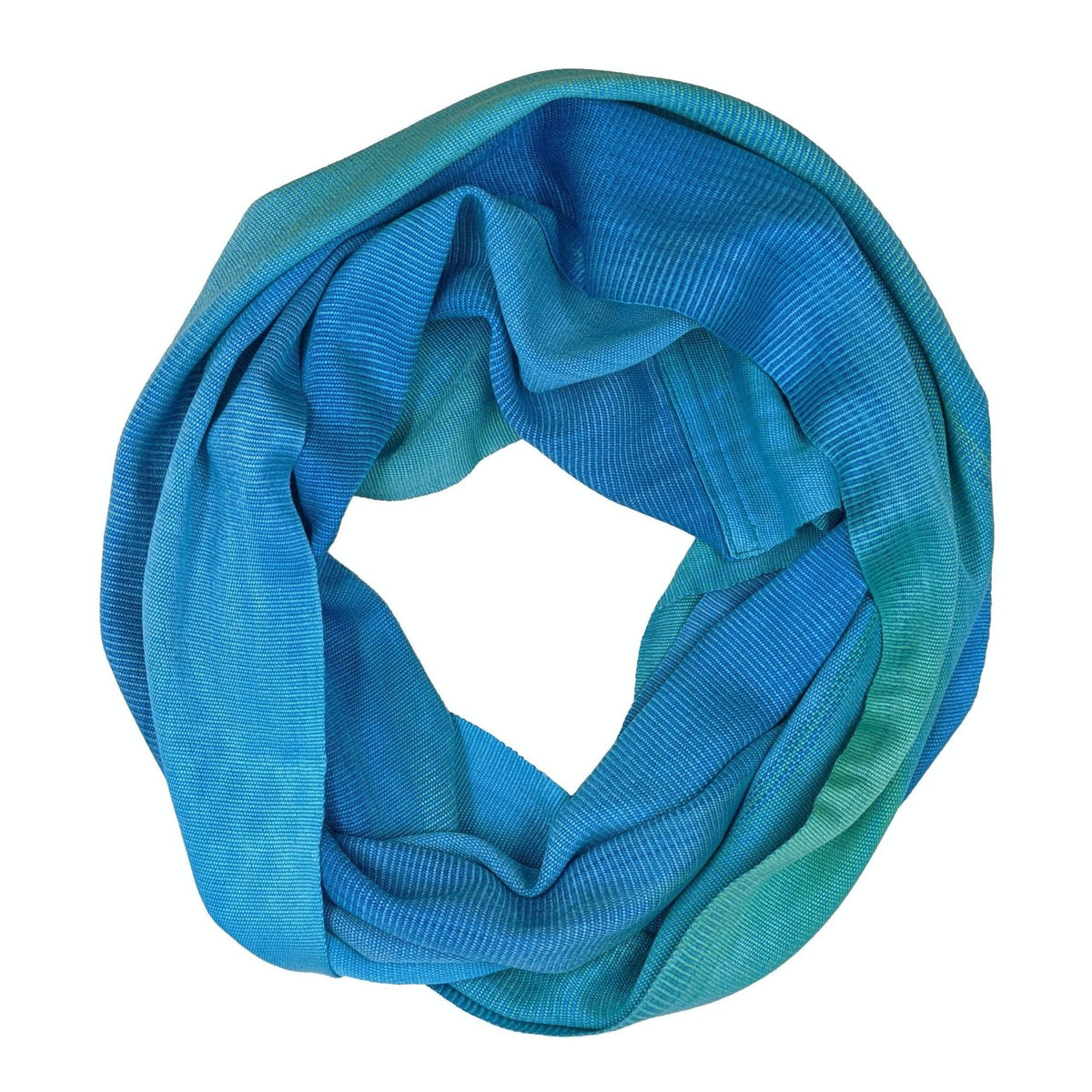 Bufanda infinita tejida a mano de bambú ligero turquesa y azul celeste 11 x 68